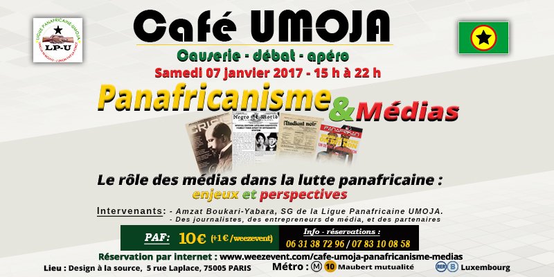 Dans le cadre de ses activités, la Ligue Panafricaine UMOJA organise un café thématique ce samedi 07 janvier prochain autour du thème : "Le rôle des médias dans la lutte panafricaine : enjeux et perspectives ? ".